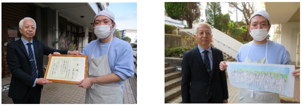 佐藤 隆信さんは、今回の応募作品「旅行の集合写真」が高く評価され、見事入選となりました。訪問当日は、アート屋わんどの皆様にも温かく迎えていただき、和やかな雰囲気の中で授与を行いました。